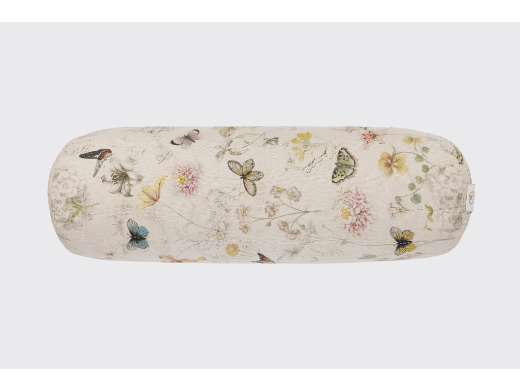 Bolster má praktické poutko pro pohodlný přenos ze zlaté koženky, obal je z bavlněného plátna.
