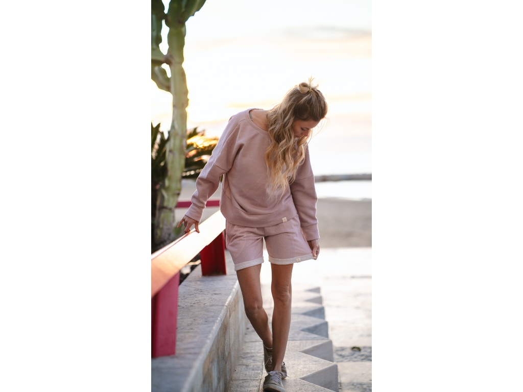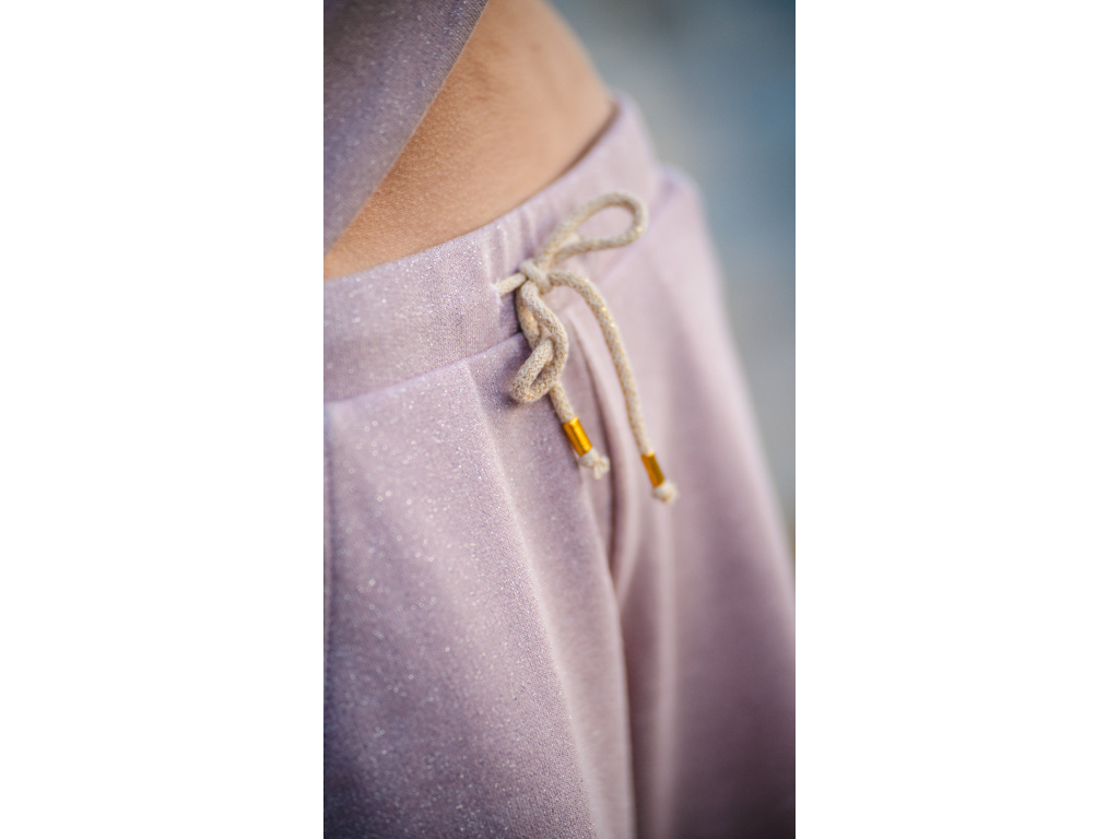 Teplákové kraťasy Simple lahodí oku a skvěle sedí. Jsou ideální na každodenní nošení a volnočasové aktivity. Látka je protkaná stříbrnou nitkou, která dodává teplákovým kraťasům šmrnc. V pase je pevná guma a šňůrky se zlatým kováním.