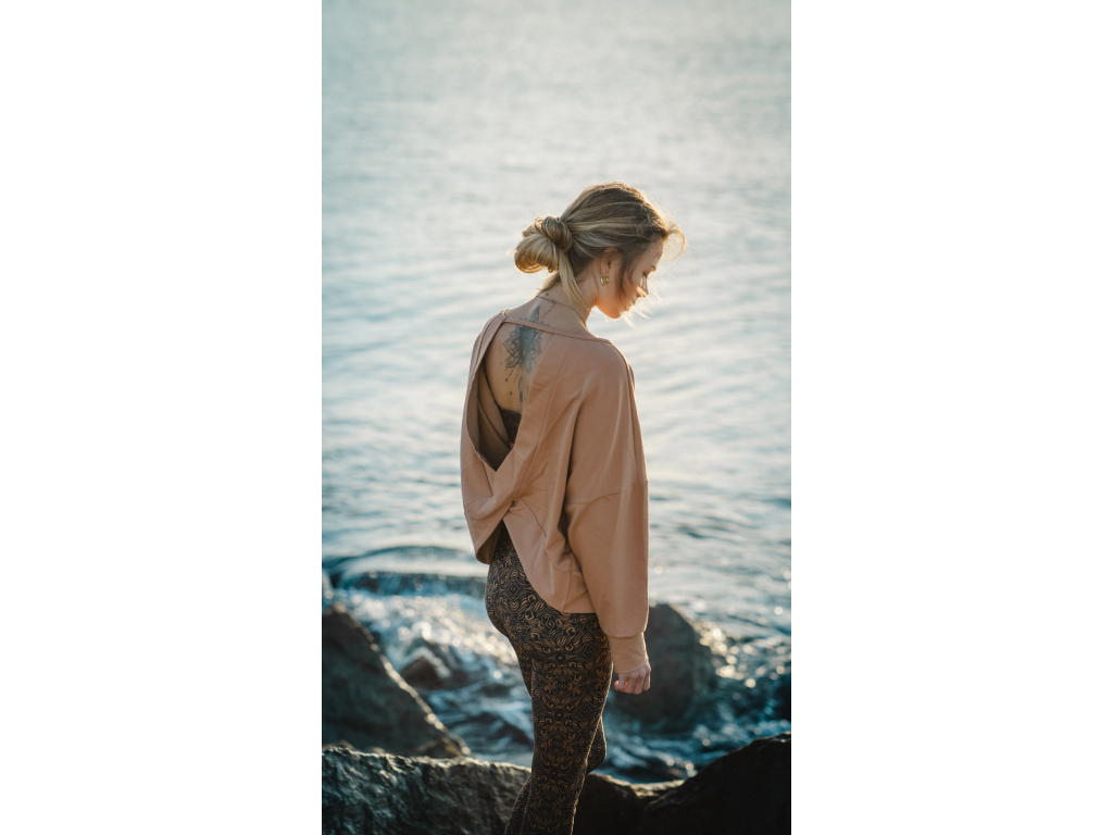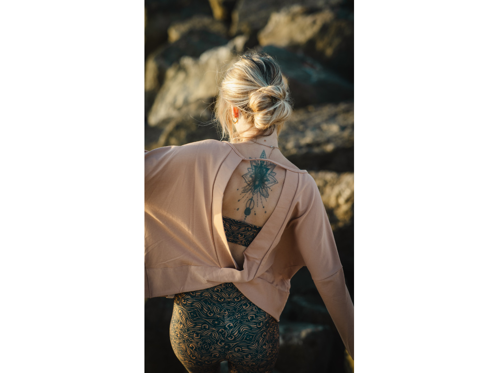 Rafinovaná oversize mikina s otevřenými zády nechá vyniknout nejen vaše záda, ale i sportovní podprsenku. Lze nosit s podprsenkou nebo tričkem. Nebojte se kombinovat, tahle mikina je pro to stvořená.