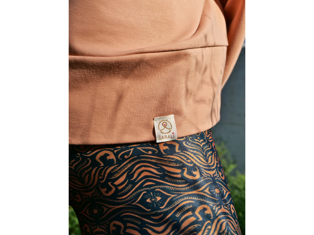 Střih: mikina je volného střihu, tzv. oversize. Rukávy jsou dlouhé, zakončené patentem.