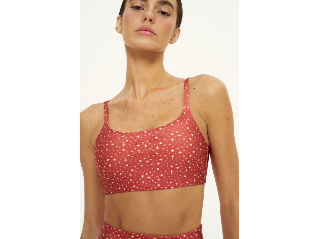 Podprsenka je vyrobena z lehké, vysoce elastické tkaniny. Přiléhavý kousek má výstřih ve tvaru U, tenká ramínka, exkluzivní potisk a je bez vycpávek.