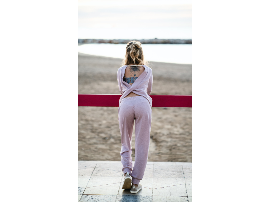 Tepláky Simple - růžová lurex