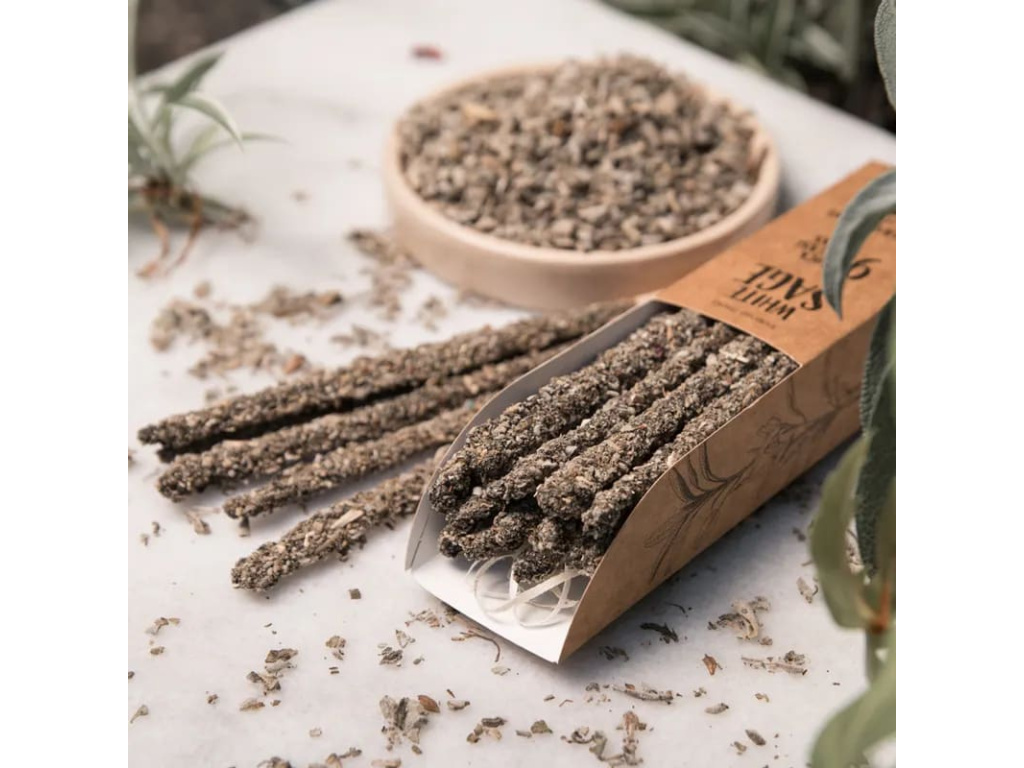 Bílá šalvěj je tradičně využívána k očistě prostoru i mysli, podporuje klid, harmonii a duchovní rovnováhu.
